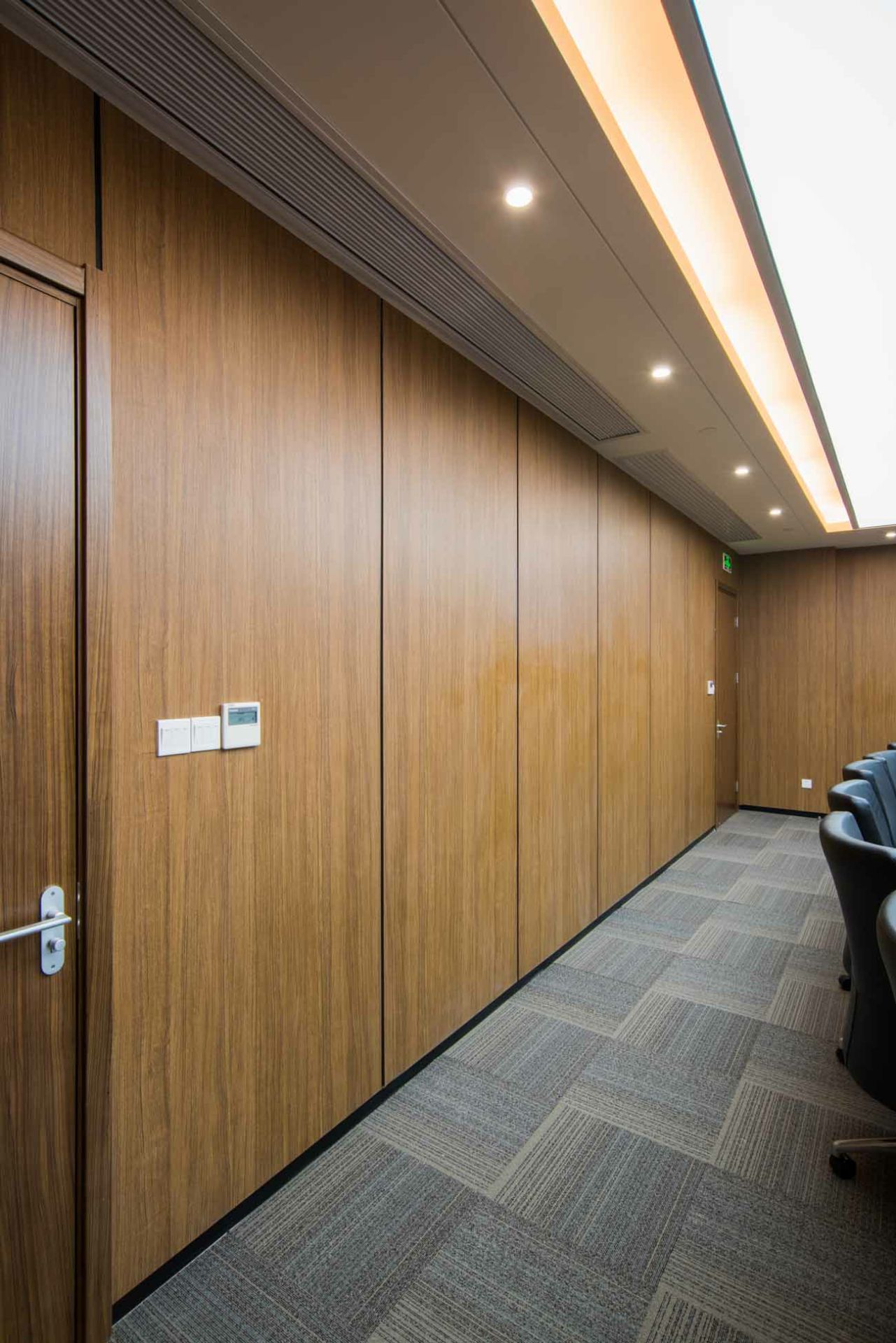 全景单玻隔断系统金属木纹复合墙板系统